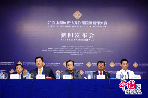 中国网9月2日讯 2013年9月2日,由国务院新闻办公室、中国作家协会和中国外文局联合主办,“中国图书对外推广计划”工作小组、中国翻译协会、中国作家协会创研部和《人民文学》杂志社承办的“2013中国当代优秀作品国际翻译大赛”启动仪式在京举行。