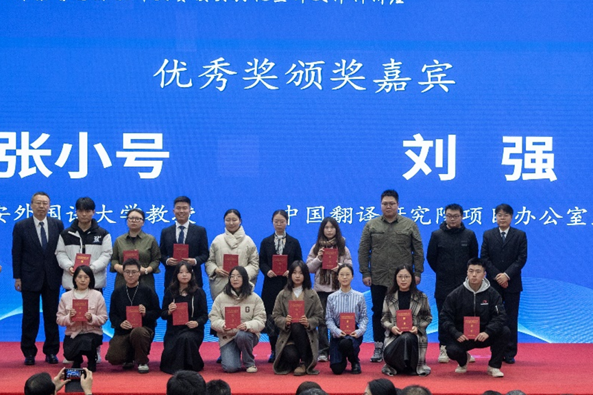 西安外国语大学高翻学院副院长张小号、中国翻译研究院项目办主任刘强为优秀奖获奖代表颁发证书
