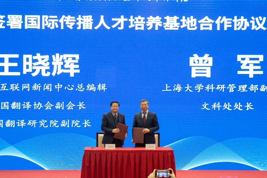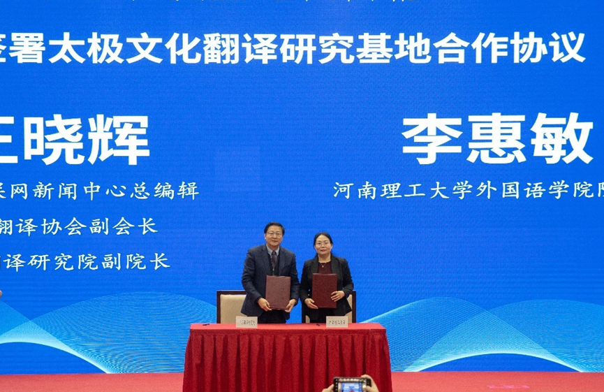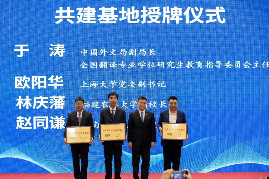会议期间,中国翻译研究院分别与上海大学、福建农林大学、河南理工大学签署了国际传播人才培养基地合作协议、农林(菌草)文化翻译研究基地合作协议与太极文化翻译研究基地合作协议,于涛为共建基地授牌。