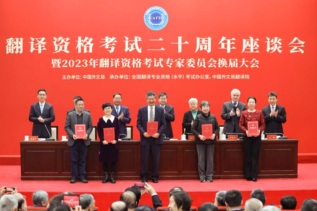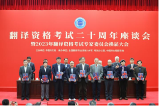 12月15日,全国翻译专业资格(水平)考试二十周年座谈会暨2023年翻译资格考试专家委员会换届大会在京召开。中国外文局局长、中国翻译协会会长杜占元,中国外文局副局长、翻译资格考试领导小组组长刘大为,中国外文局副局长、翻译资格考试领导小组副组长于涛,人力资源社会保障部专业技术人员管理司司长李金生出席会议。