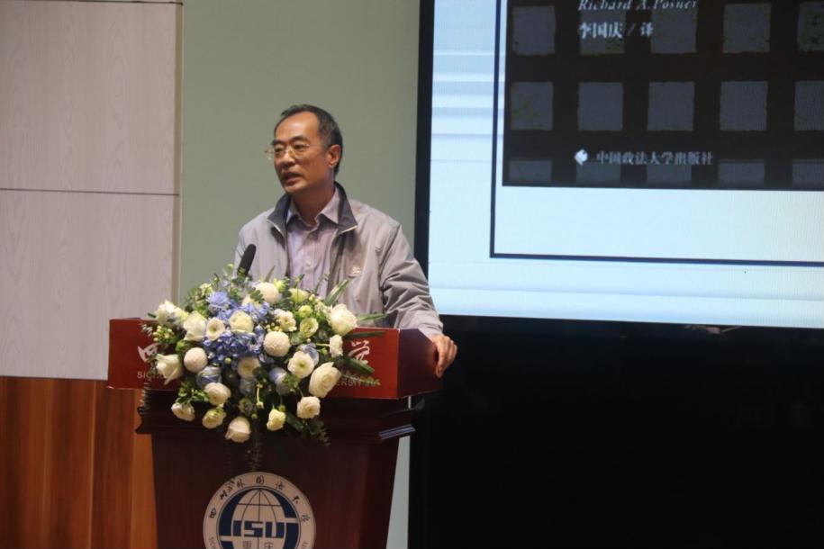四川外国语大学校长董洪川教授在开幕式致辞中向与会专家学者的到来表示热烈欢迎,向大赛获奖选手表示衷心祝贺。他介绍了四川外国语大学发展历史以及近年来开展“语言+法律”人才创新培养的情况。四川外国语大学一直积极贯彻落实“新文科”发展理念,打破学科专业壁垒。聚焦服务国家重大发展战略需求,努力培养高层次外语人才。