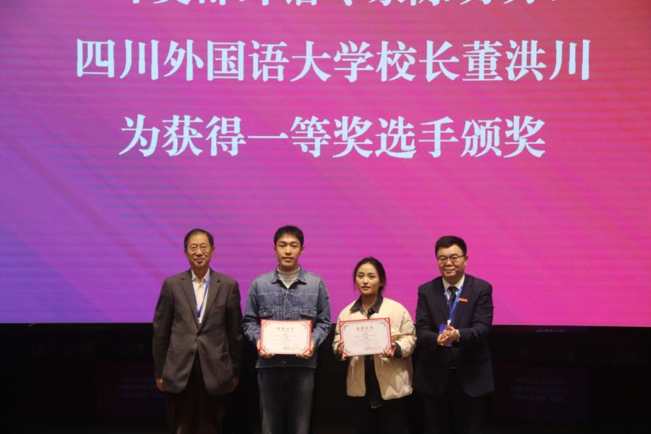 大赛颁奖典礼环节,董洪川教授、陈明明大使、张法连教授、四川外国语大学副校长祝朝伟教授、杨俊峰教授、赵军峰教授、唐丽玲教授、中国外文局翻译院翻译研究部主任张雅明、郑达轩教授分别为本次大赛优秀组织奖单位以及大赛一、二、三等奖和优秀奖获奖选手颁奖。杭州师范大学外国语学院特聘教授林巍对本届大赛译文进行了精彩点评。大赛获奖选手代表、中南财经政法大学的刘梦婕同学分享了获奖感言。