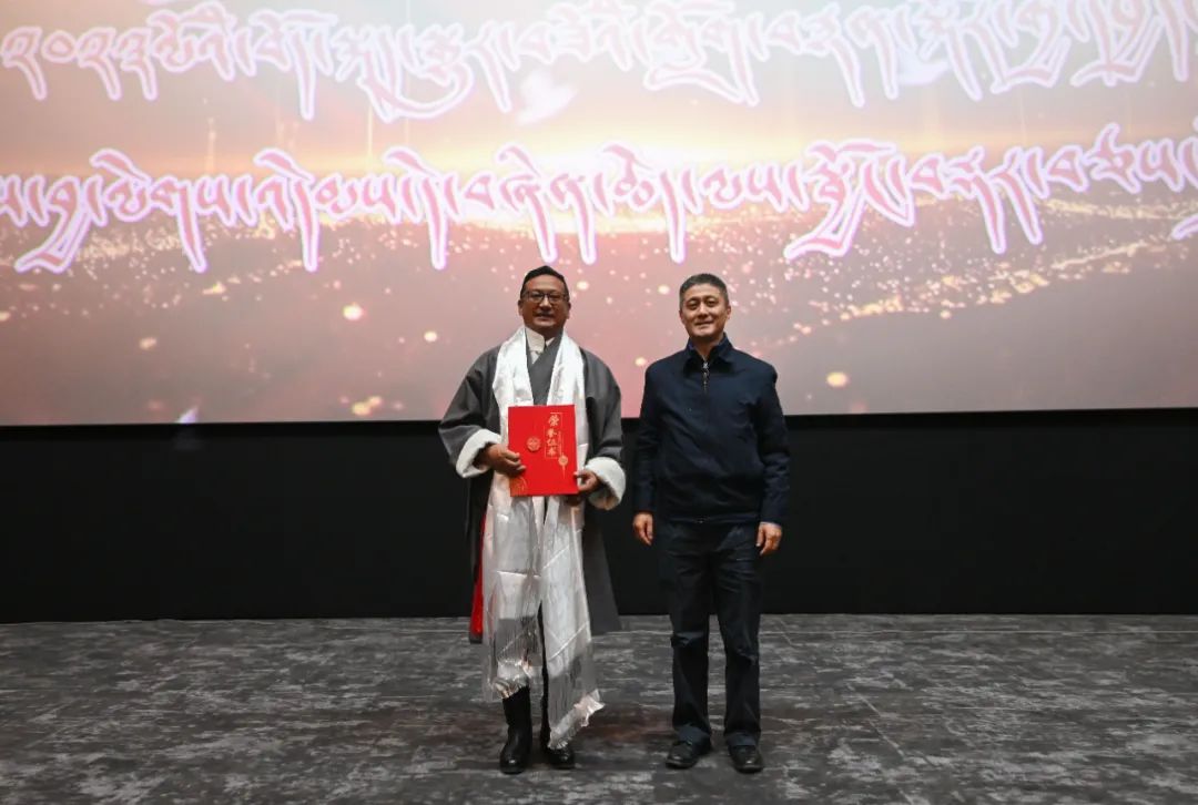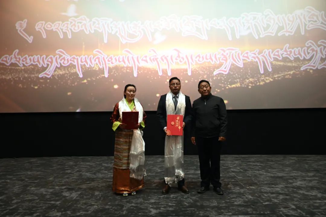 拉琼为“优秀藏语译制影片奖”获得者颁奖