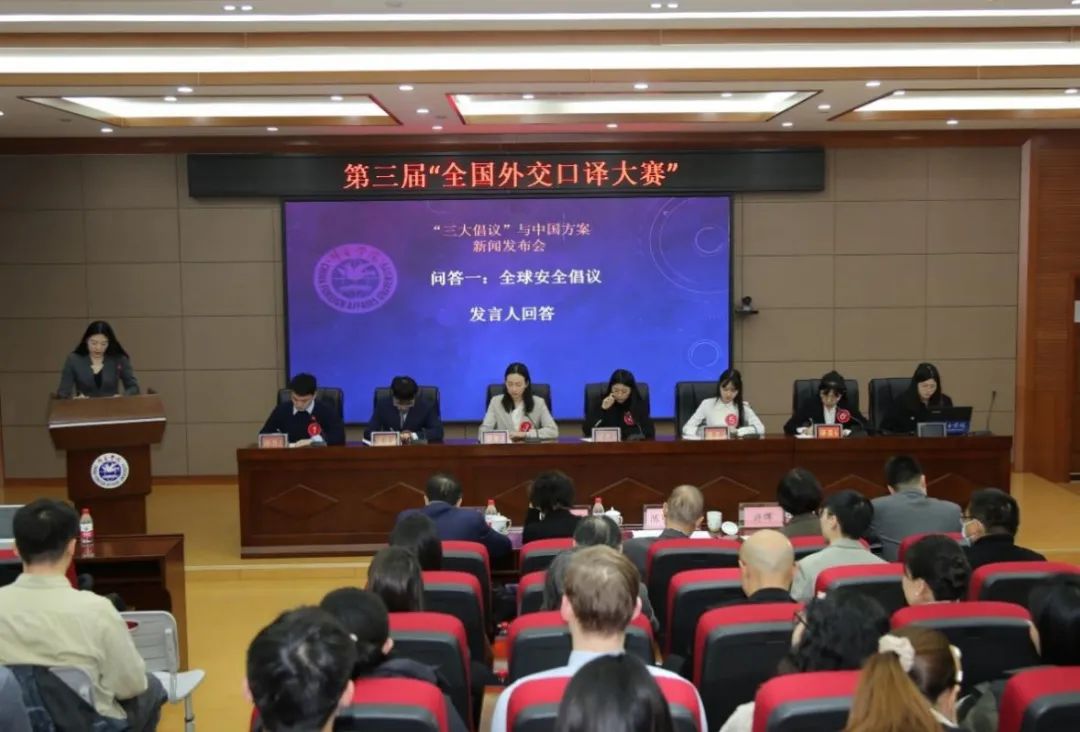 为深入学习贯彻习近平外交思想,践行全球发展倡议、全球安全倡议、全球文明倡议,外交学院于2023年12月30日成功举办第三届“全国外交口译大赛”。本届大赛以“三大倡议与中国方案”为主题,关注中国方案、中国智慧,用世界听得懂的语言阐述中国之路、中国之治、中国之理。