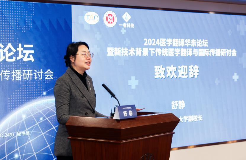 舒静对参会专家学者表示热烈欢迎,她指出,上海中医药大学一直以来致力于多渠道、多手段、全方位地推动中医药国际化和中医药文化的传承、传播和发展,不断开创新时代海外中医药文化传播工作新局面。本次医学翻译华东论坛的召开将为中医药翻译与国际传播能力建设带来新视野、新方法和新思考,为提升中医药外语翻译和传播人才培养水平贡献智慧和力量。